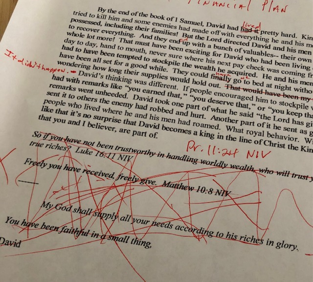 Needless to say things got off to a rocky start.  I could not believe how fiercely my husband edited my work.  On at least one occasion he crossed out three-fourths of what I wrote.  Three-fourths!  Often he rejected my favorite and most clever sentences.  I did break down and cry at times, but I did not argue.  Why?  I wanted to help people learn about God and I trusted my husband.  He had wisdom.  I had blind spots.  I was in a habit of belaboring my points and being overdramatic or melodramatic.  Sometimes I showed off with the way I worded things and tried to look smart or clever.  I knew my husband was helping me mature as a writer.  And because I accepted his correction and direction, I knew what I wrote carried more power and had a proper focus.  I am so thankful for the help of someone who loved me, sharpened me, and helped fulfill God’s plan for me.  I now strongly believe in editors.  For writing, and for life.