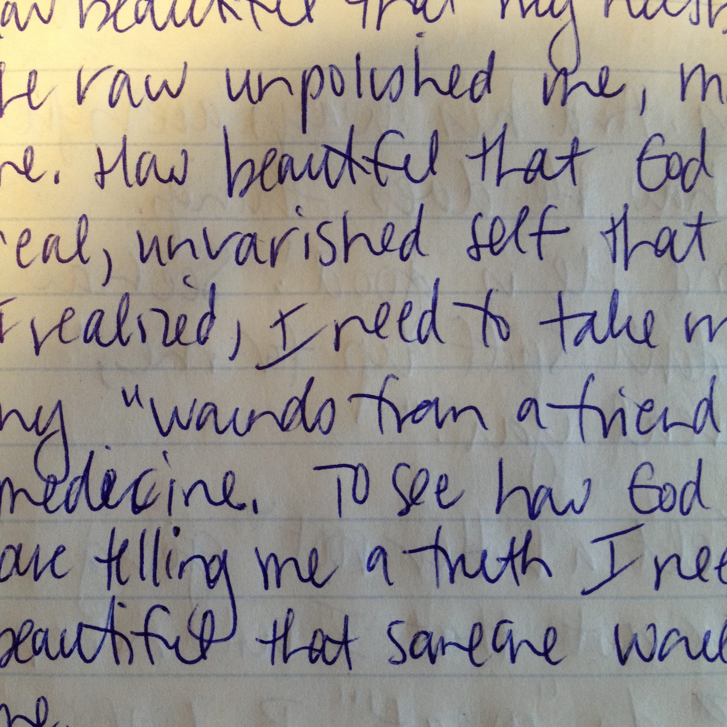 How beautiful that you would love my unvarnished heart!! I have worked very hard this week to polish my writing pieces for my website. Last night, when Jake told me the pieces were “very good,” but that my journal entries were “the best,” I was hurt. I worked so hard to be professional. “I cannot work any harder,” I told you this morning. I felt angry, at you Lord and him. And then this morning I looked at my journal and thought– how beautiful that my husband would love the raw unpolished me, more than the polished me. How beautiful that God would love my real, unvarnished self that pours out to him. I realized I need to take my own medicine, my “wounds from a friend can be trusted” medicine. To see how God and my husband are telling me a truth I need to see, how beautiful that God would love the real me. “While we were yet sinners, Christ died for us.” Romans 5:8